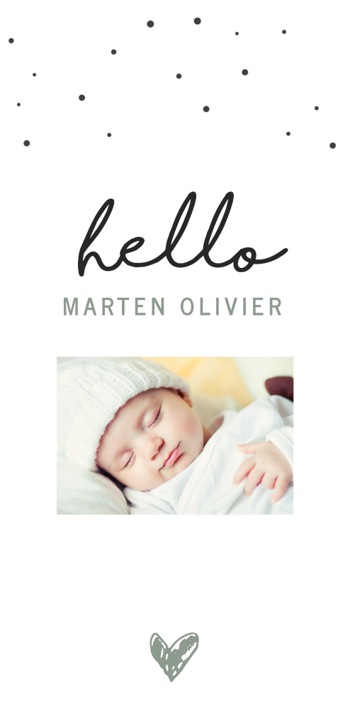 Vrolijk geboortekaartje voor een jongen met ruimte voor een eigen foto. De tekst hello is een illustratie.