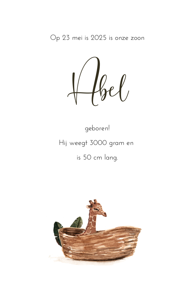 Trendy jungle geboortekaartje voor jongen met giraffes in kever