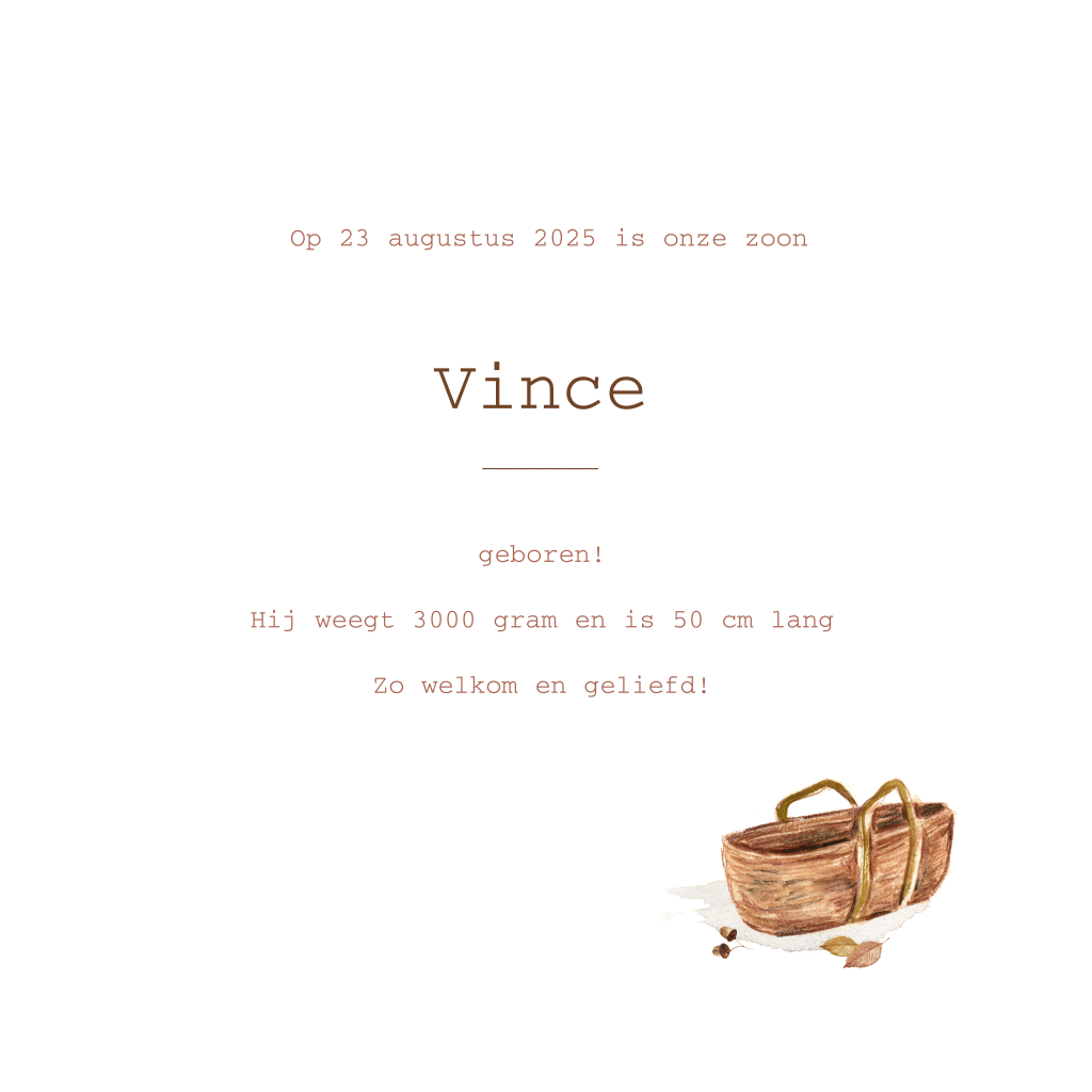 Schattig geboortekaartje voor de geboorte van je zoon met krijt tekening van hertje bij baby mandje.