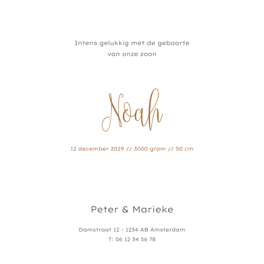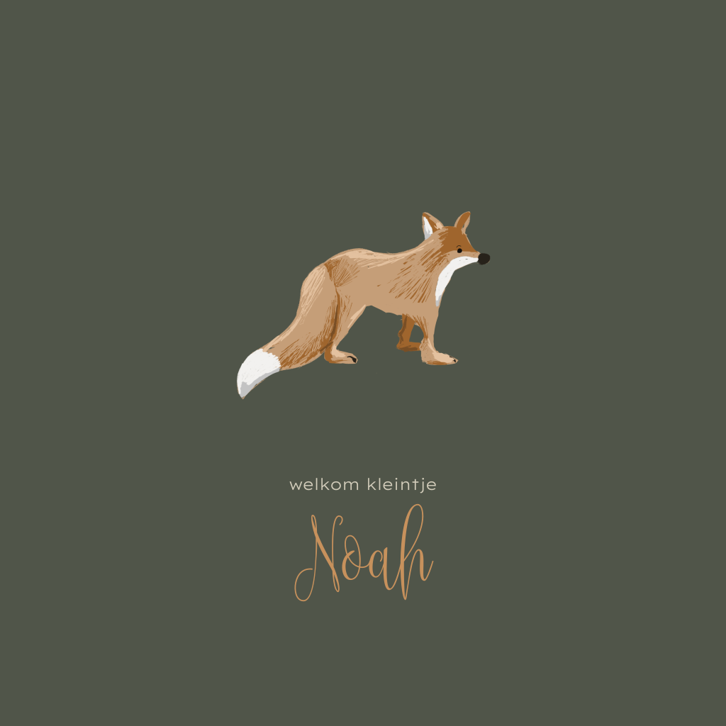 Dit is een lief geboortekaartje voor jullie zoon. Op een donkergroene achtergrond staat de tekening van een vos. Het kaartje kan naar wens aangepast worden in onze online editor. Helemaal tevreden? Bestel dan een proefdruk en bekijk hoe dit kaartje er in het echt uitziet!