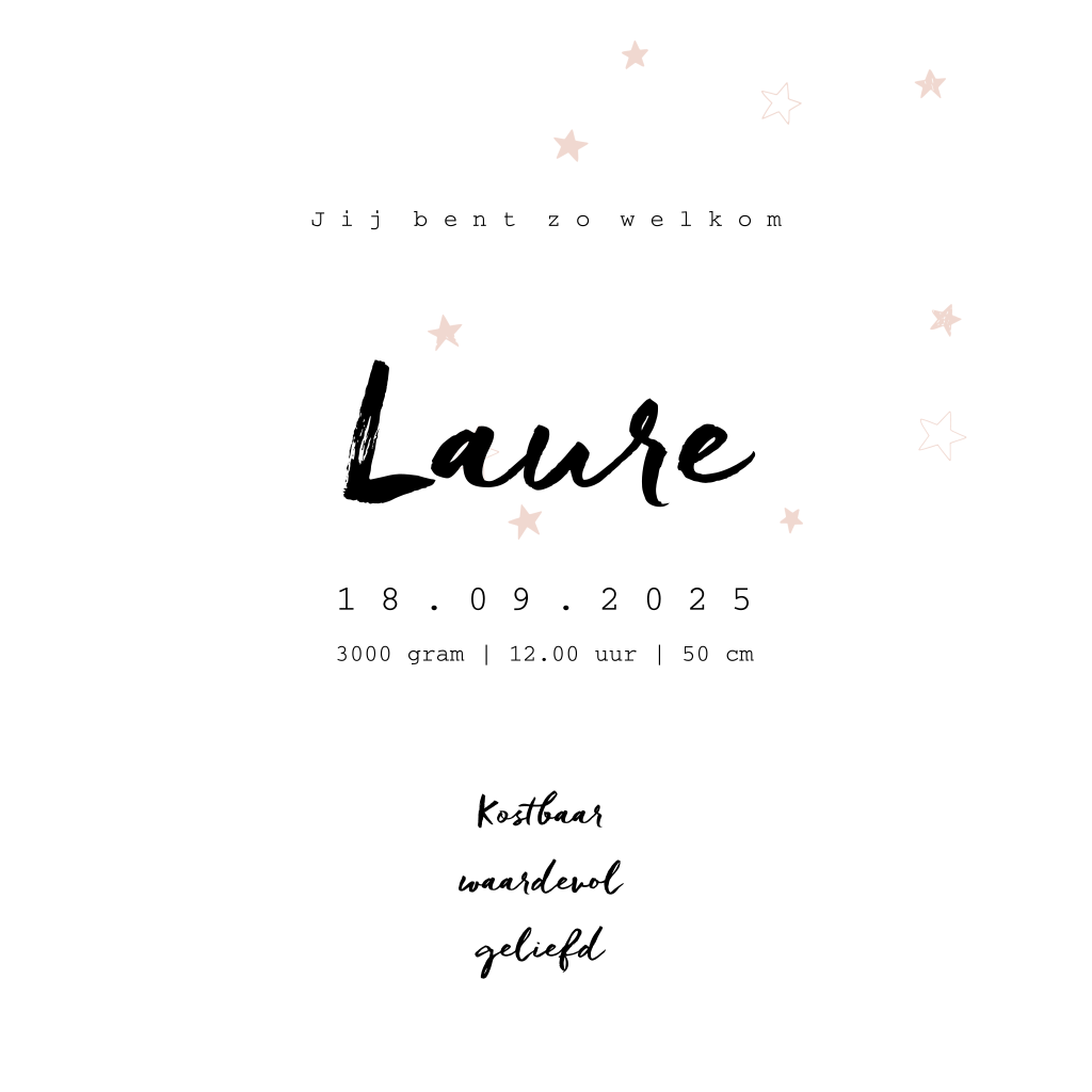 Mooi kaartje voor de geboorte van een meisje of voor een adoptiekindje. Dit illustratieve babykaartje met een tekening van een wereldbol en leuke sterretjes is hip en lief tegelijk! Wanneer is jouw kleintje geboren?