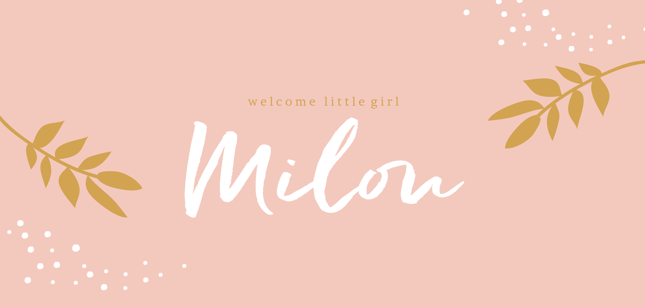 Origineel geboortekaartje met roze achtergrond en okergele takjes. Aan de buitenzijde staan nog kleine witte stipjes. Leuk voor een meisje! Teksten kun je op de achterkant kwijt. Tip: combineer hem met https://hippe-geboortekaartjes.nl/product/sluitzegel-its-a-girl-pink.