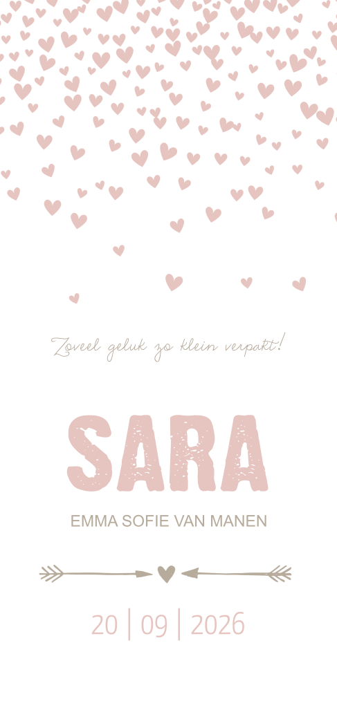 Roze hartjes confetti en een leuke pijl. Liever een andere kleur? Pas aan in de editor.