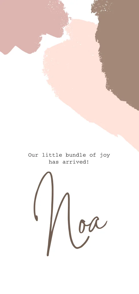Hippe geboortekaart met brushes in tinten oudroze en bruin. Het geeft hem een eigen, stoere uitstraling. Leuk voor een dochter!