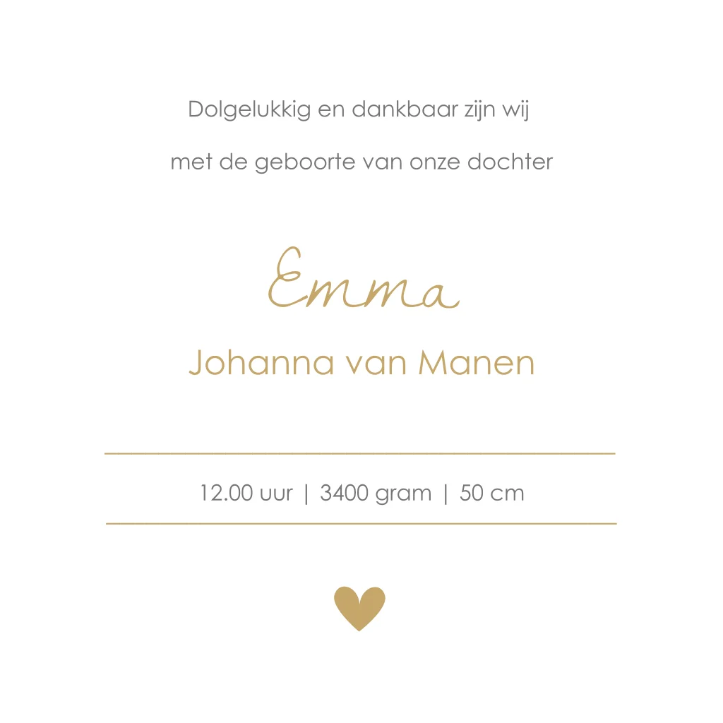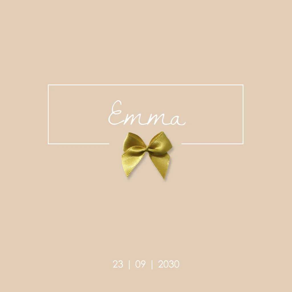 Lief en klassiek geboortekaartje voor je dochtertje met de naam in een kader en daaronder een echt strikje in goudlook.
