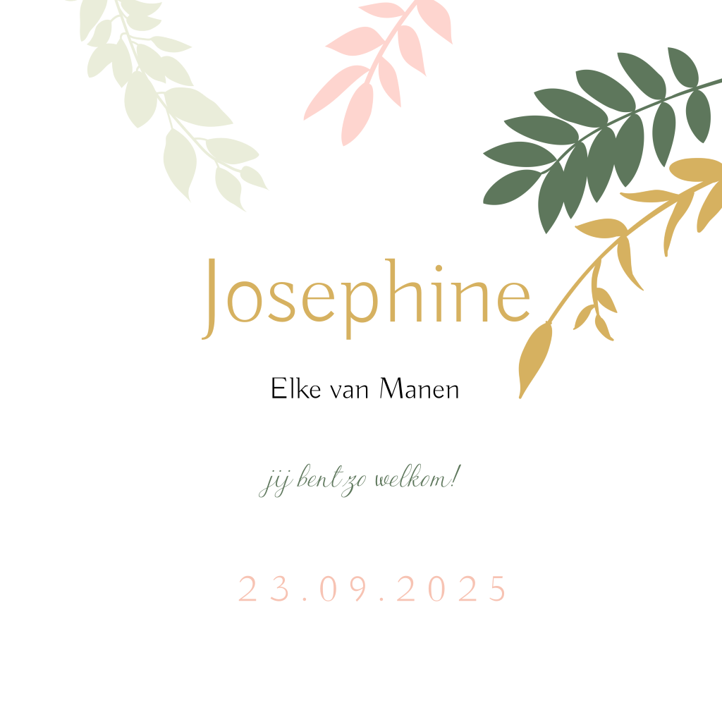 Wat een lief botanisch geboortekaartje met gekleurde, sierlijke takjes! Dit kaartje is ontworpen door Fientje & Co en leuk voor een babymeisje.