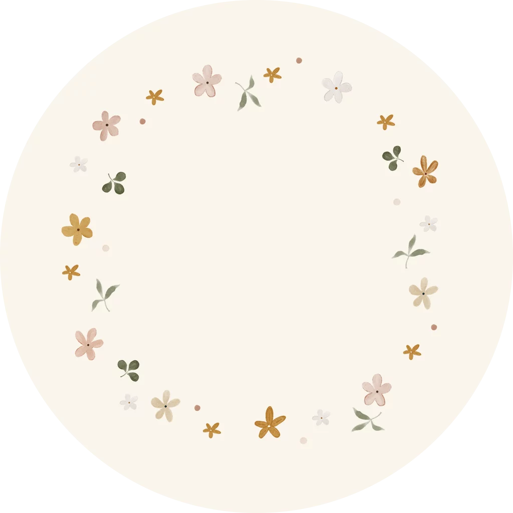 De sluitsticker heeft een zachte achtergond met schattige bloemetjes in een cirkel. De sluitsticker past bij het originele geboortekaartje van Fientje & Co.