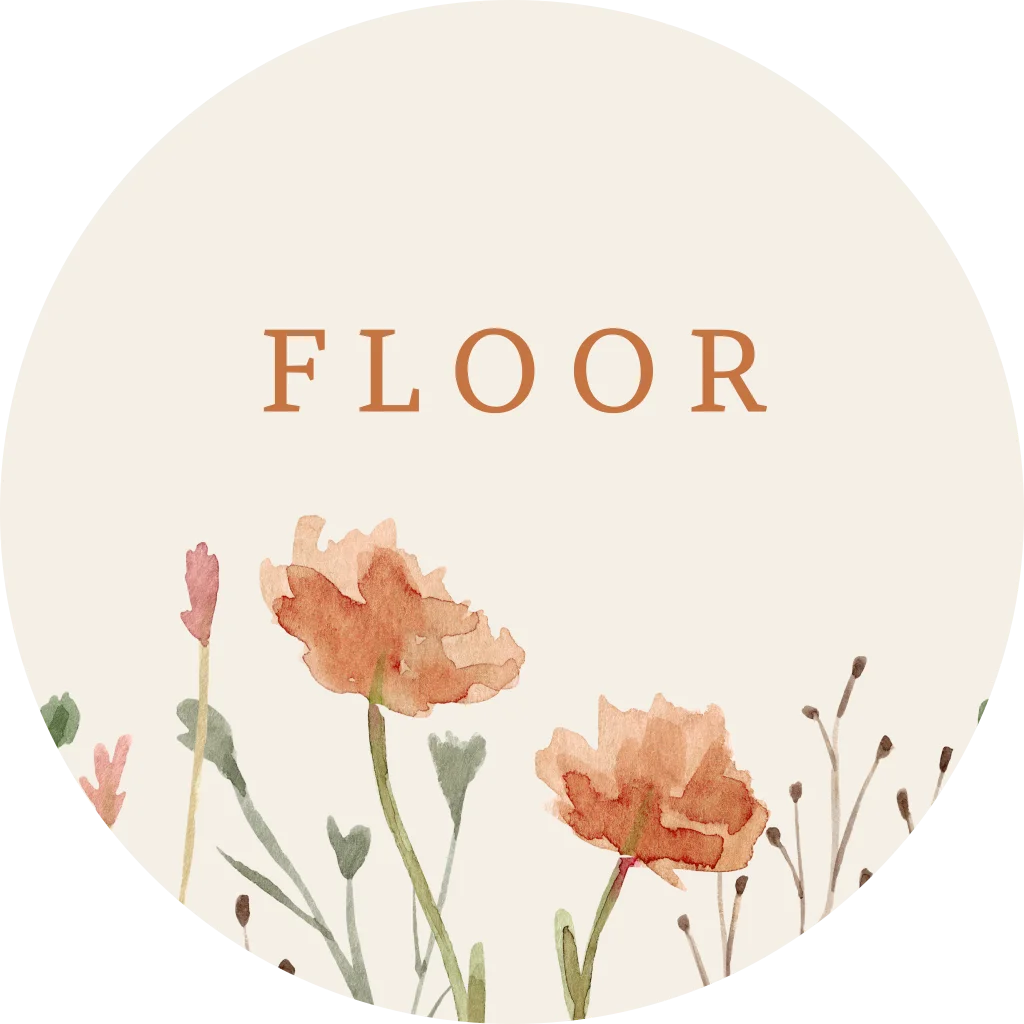 Een prachtige sluitsticker met een crème kleur. Er zijn mooie oranje getekende bloemen toegevoegd met wat takjes. De sluitsticker past bij het kaartje van Fientje & Co.