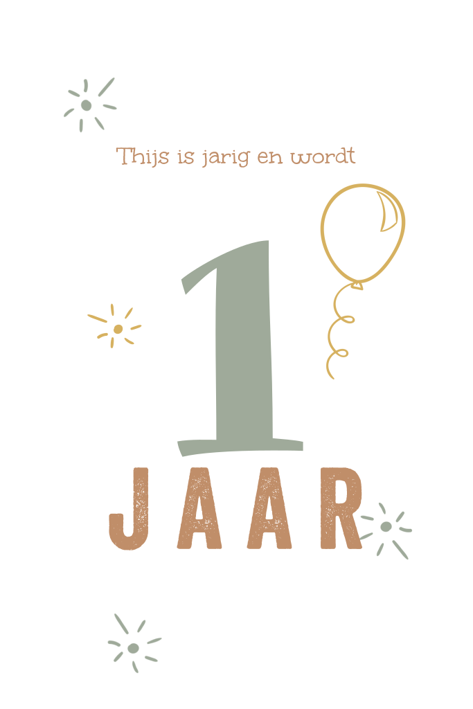 Een ballon en confetti om een megagrote 1, wat tof! Maak dit vrolijke uitnodigingskaartje voor jouw 1-jarige zoontje compleet en kies de kleuren en lettertypes die jij tof vindt!