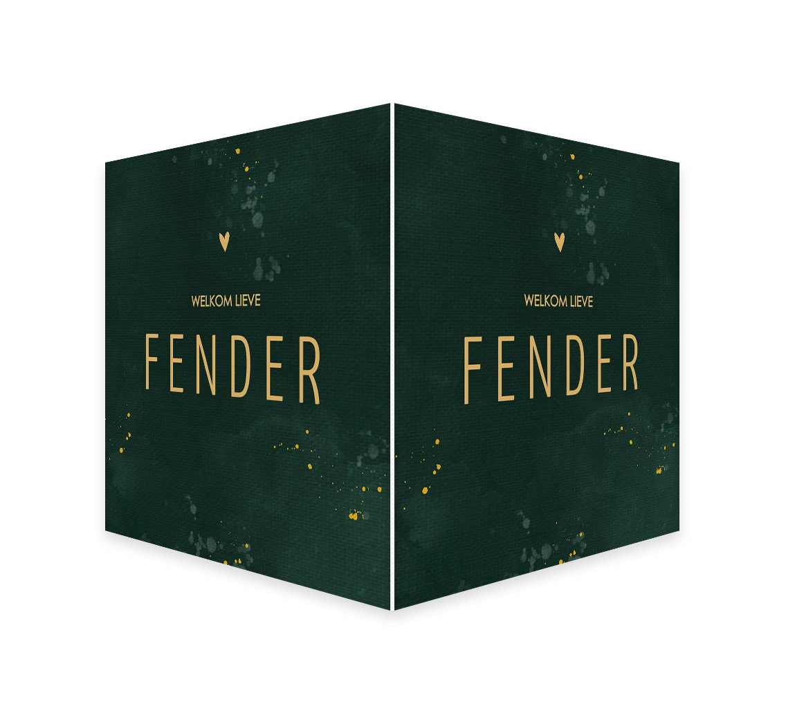 Een dubbel raambord in de stijl van het geboortekaartje om de geboorte van jullie kleine aan te kondigen, hoe cool is dat! De tekst met een hart erboven staat in goud op een donkergroene achtergrond. Het makelaarsbord kan gemakkelijk bewerkt worden in onze online editor. Je maakt één zijde op in de editor en dit wordt vervolgens op twee zijdes gedrukt.