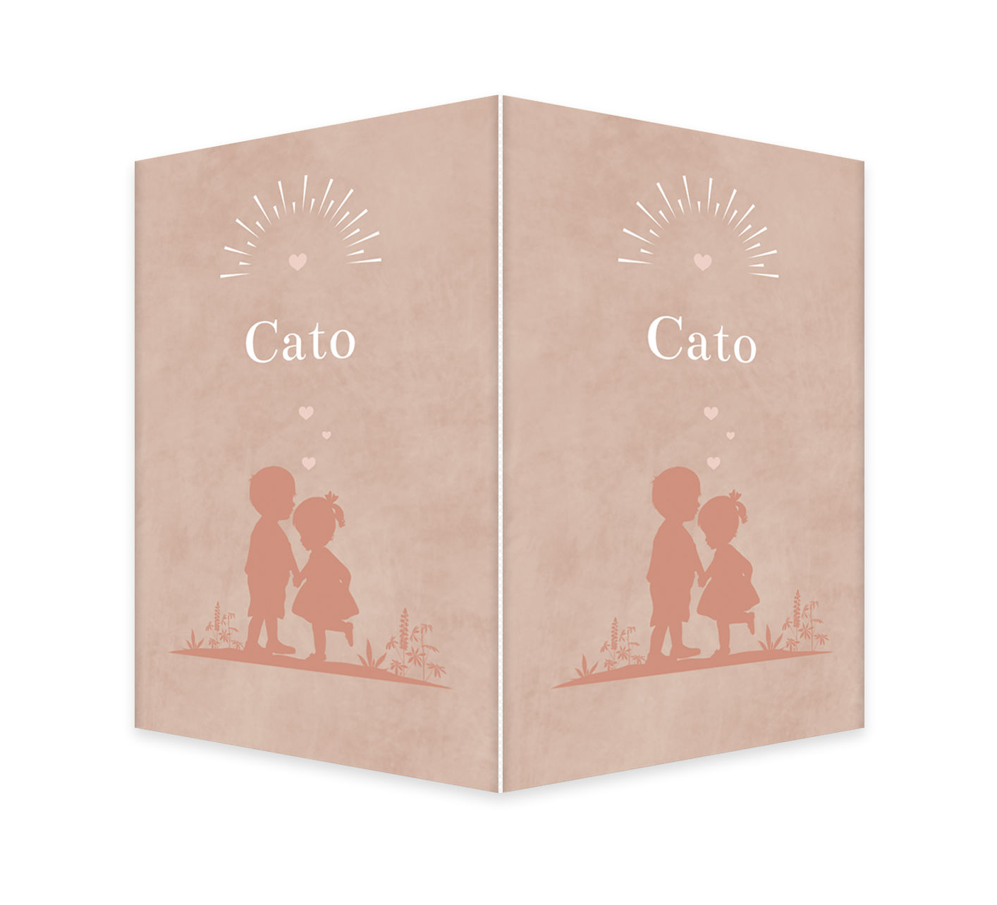Er is een zusje geboren, dat zie je meteen als dit raambord buiten hangt! Onder de naam in zachtroze met hartjes er omheen staat het peach-kleurige silhouet van grote broer die zijn zusje bij de hand houdt. De achtergrond is in leverkleurige velvet-look. Het makelaarsbord kan gemakkelijk bewerkt worden in onze online editor. Je maakt één zijde op in de editor en dit wordt vervolgens op twee zijdes gedrukt.