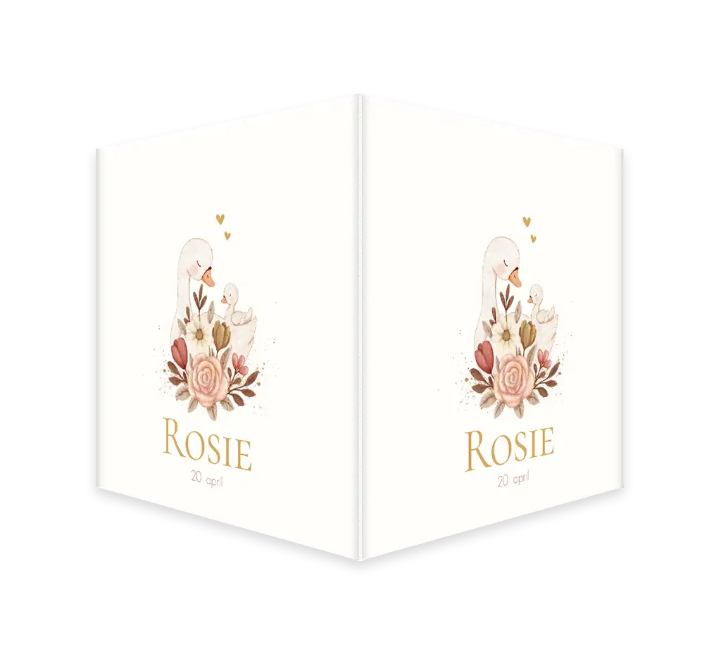 Met deze geboortevlag kondig je de komst van jullie kindje op een stijlvolle, romantische en unieke manier aan. De zachte bloemen, de tedere uitstraling van de zwanen en de harmonieuze kleuren passen perfect bij het originele geboortekaartje, waardoor alles samen één prachtig geheel vormt.