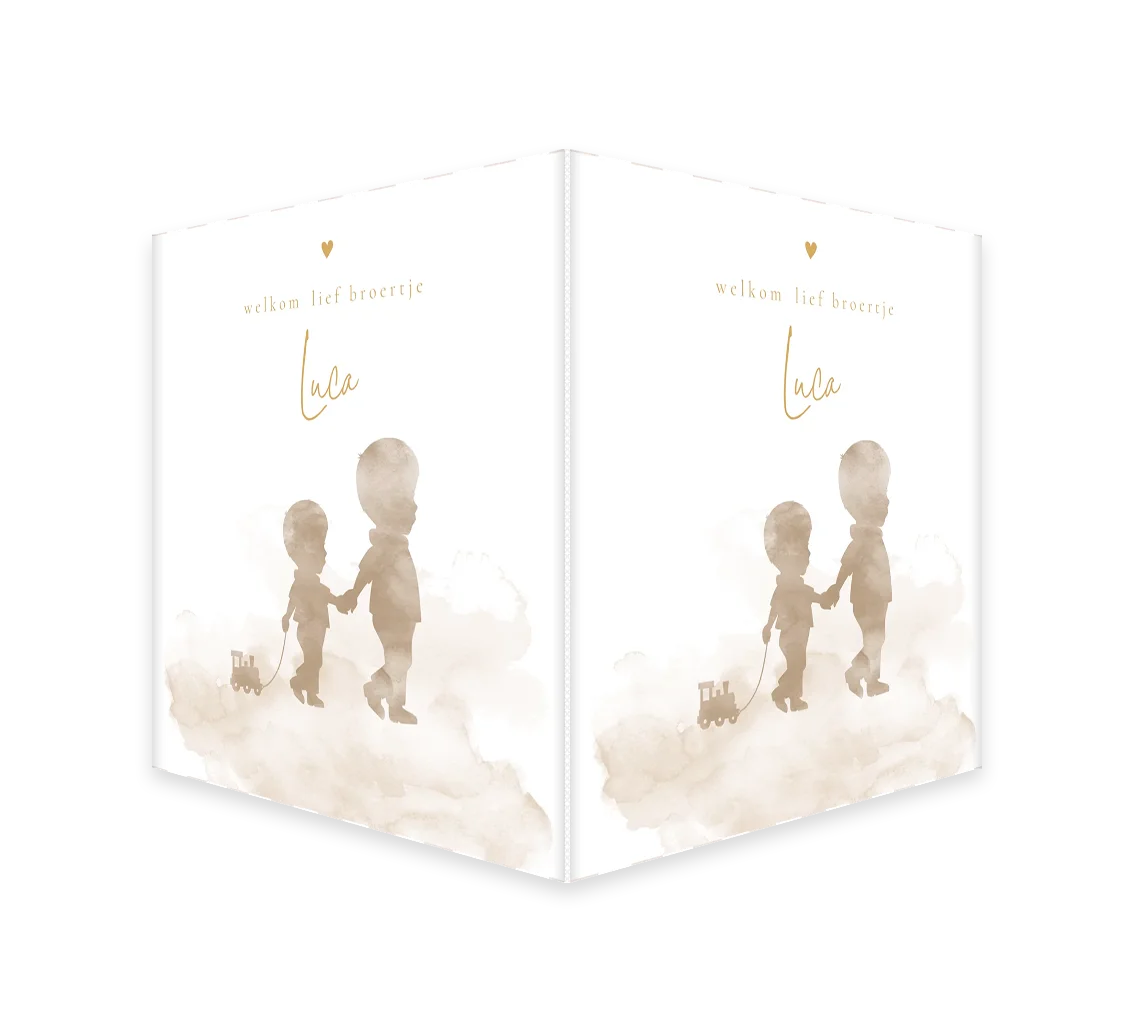 Geboortebord beige watercolour met silhouetjes van broertjes