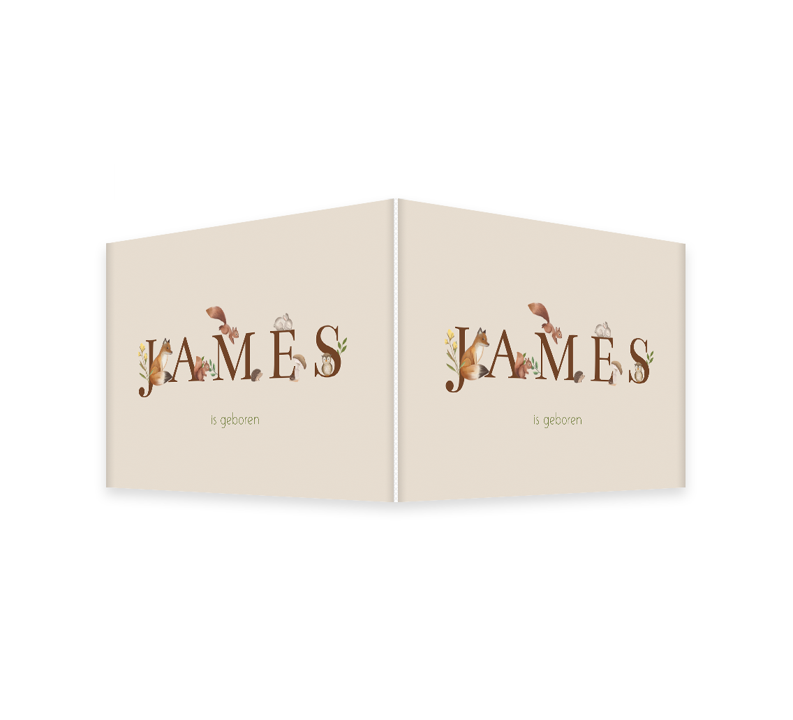 Laat de hele buurt weten dat je kindje is geboren met dit raambord! Op het bord zie je getekende bosdieren met naam. Het bord is naar wens aan te passen in onze online editor.