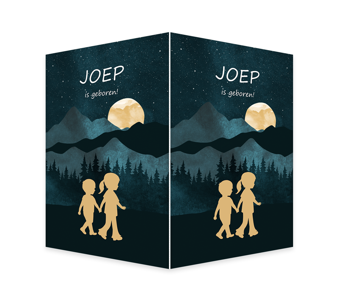 Een stoer raambord om de geboorte van jullie zoontje aan te kondigen. Het bord heeft een staand formaat met een stoer berglandschap.