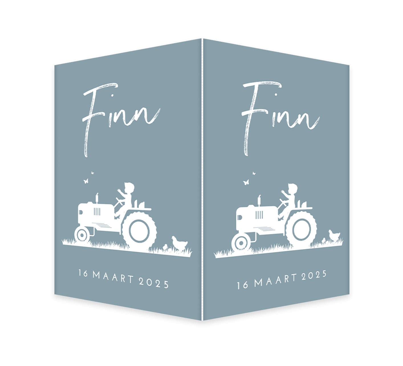Kondig de geboorte van jullie kindje aan met dit vrolijke geboortebord! Een silhouetje van een jongen zit op een tractor. Het makelaarsbord kan gemakkelijk bewerkt worden in onze online editor. Je maakt één zijde op in de editor en dit wordt vervolgens op twee zijdes gedrukt.