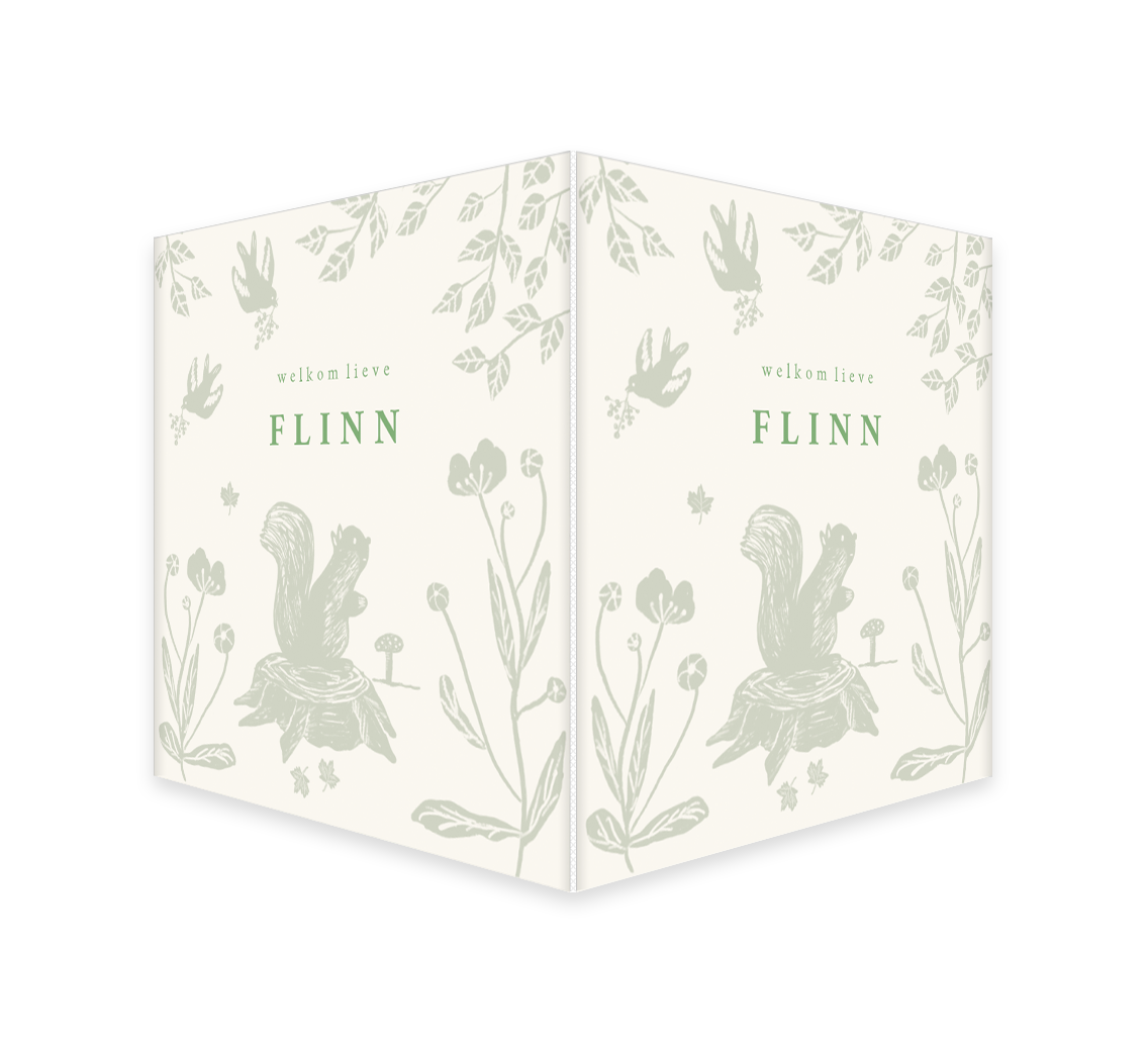 Een mooi raambord passend bij het geboortekaartje. Het geboortebord is helemaal in herfst sferen. Dit bordt heeft een schattige illustratie van een eekhoorn op een stam met bloemen er omheen. Alles in lichtgroene details. Pas het raambord naar wens aan in de online editor,