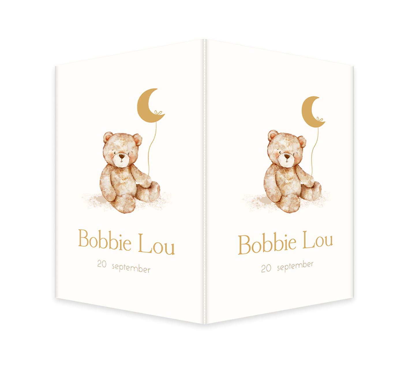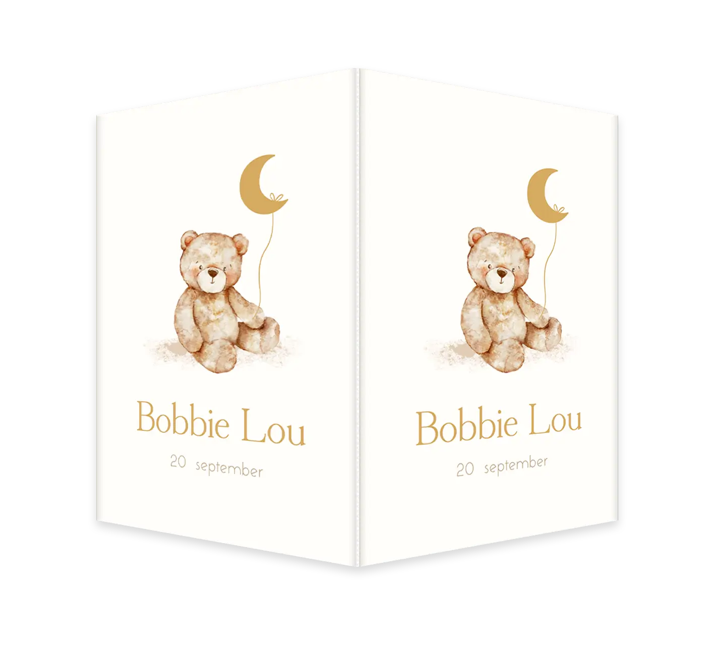 Een tof geboortebord voor jouw kindje. Het bord heeft een lichte achtergrond met daarop een lieve illustratie van een beer met maantje. Pas het bord naar wens aan in onze online editor.