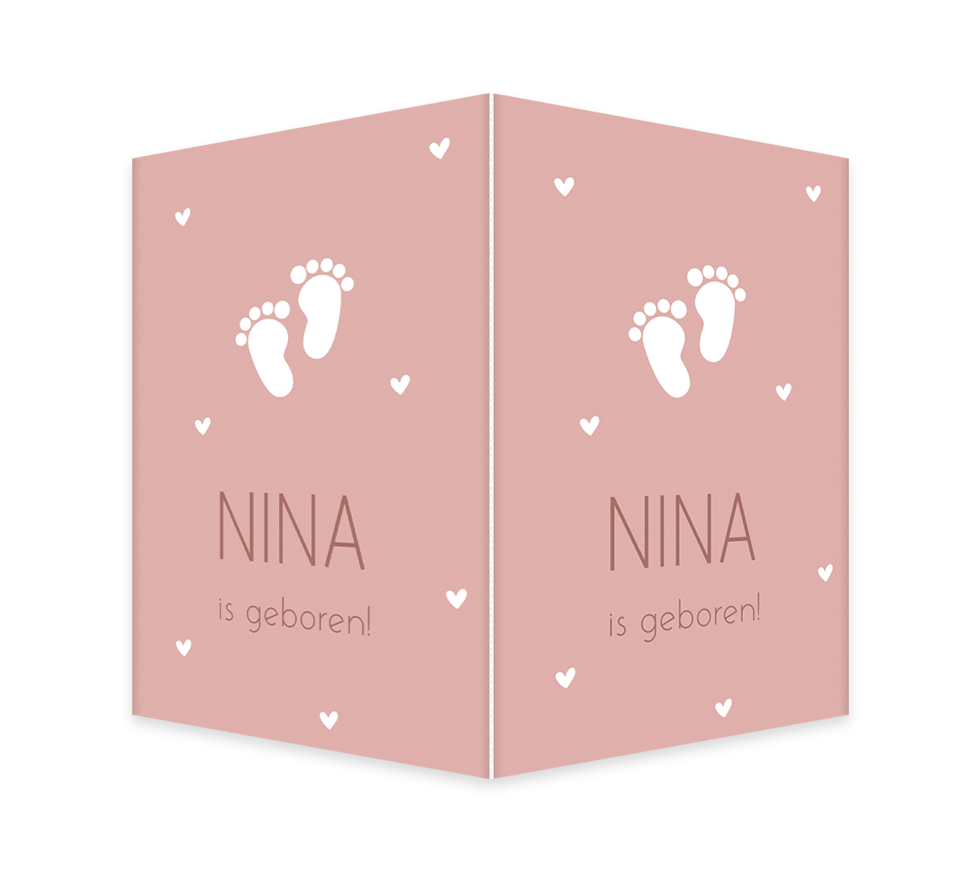 Lief roze geboortebord met voetafdrukjes en hartjes