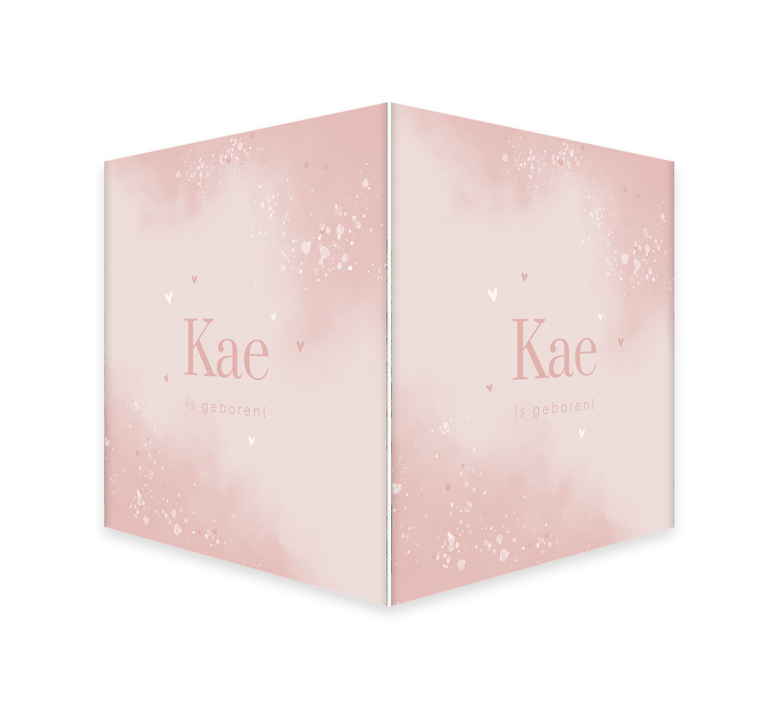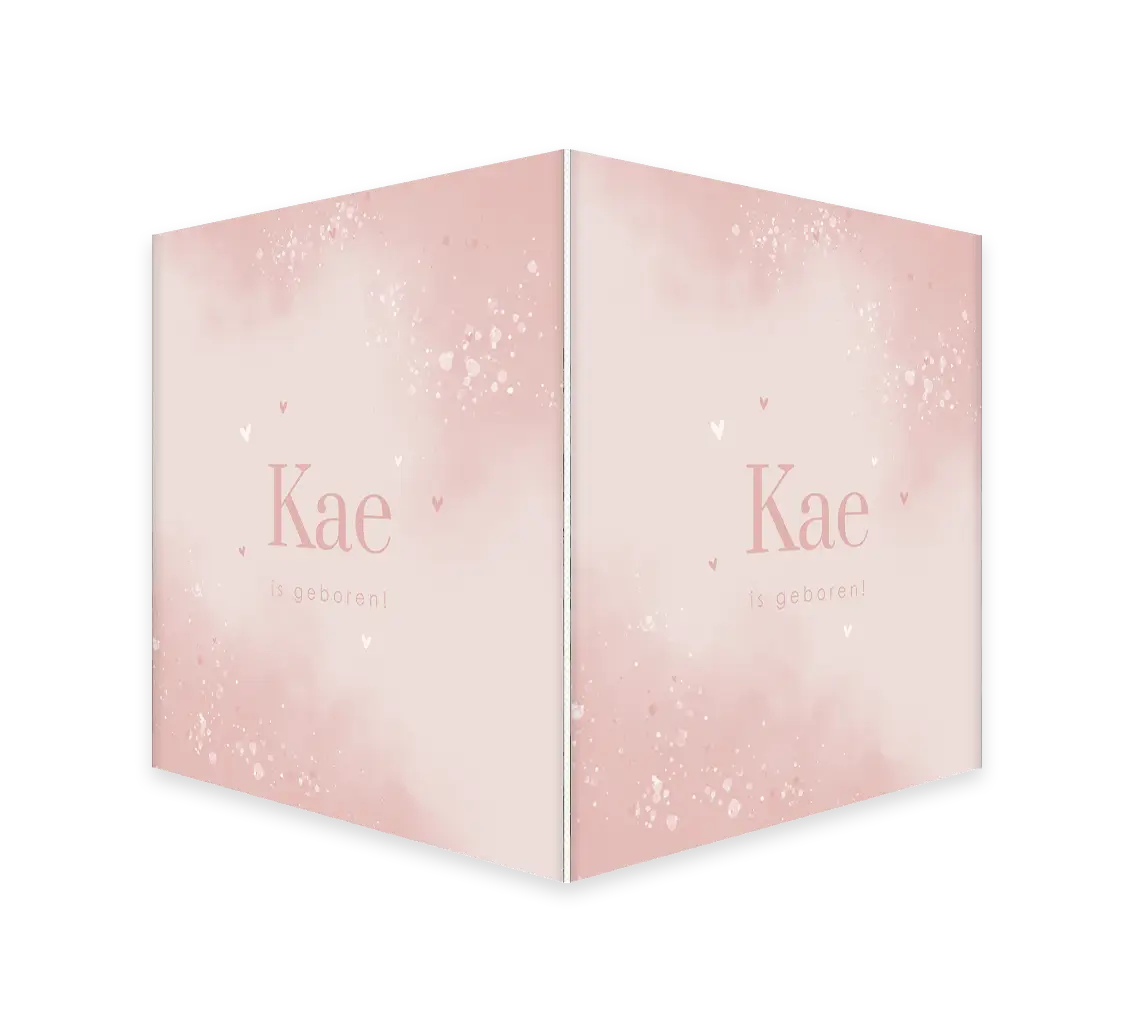 Geboortebord met roze watercolour en hartjes