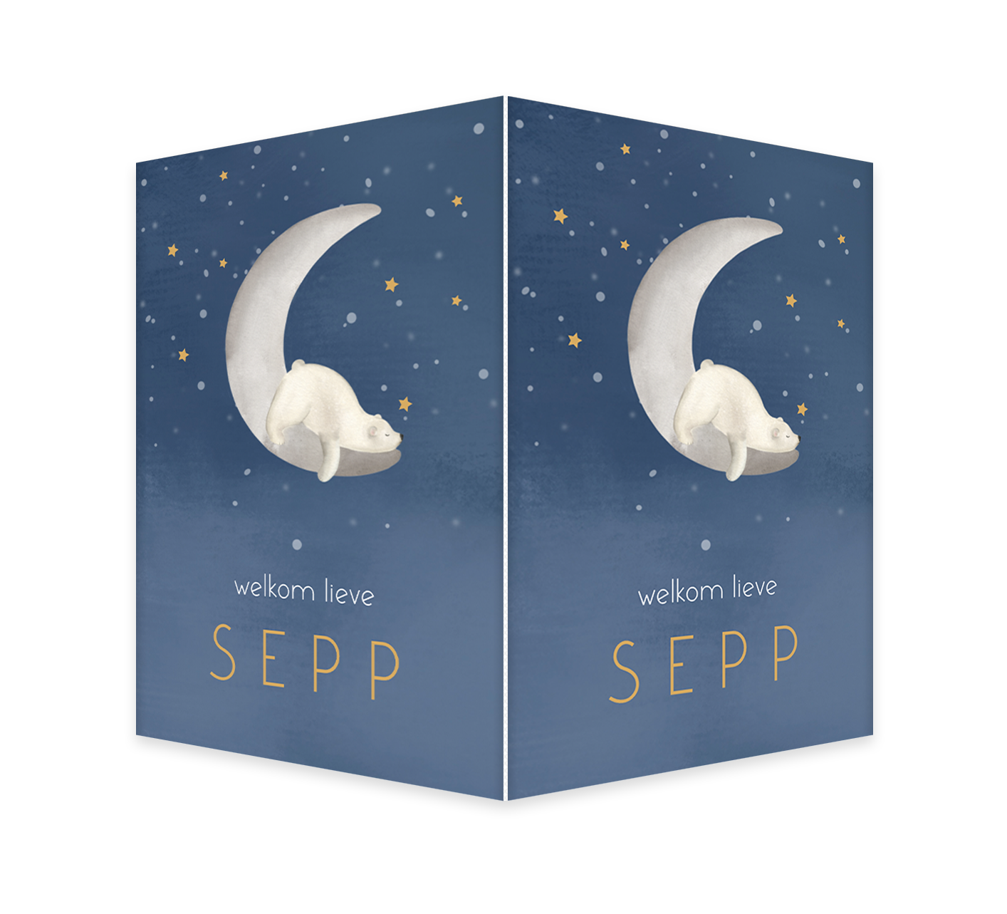Laat de hele buurt weten dat jullie kleintje is geboren met dit geboortebord! Het bord heeft een prachtige donkerblauwe achtergrond met de illustratie van een slapende ijsbeer op een maan. Het bord kan helemaal naar wens aangepast worden in onze online editor. Je maakt één zijde op in de editor en dit wordt vervolgens op twee zijdes gedrukt.