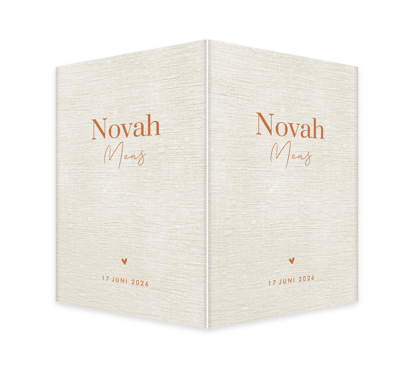 Een stijlvol geboortebord voor jouw kindje. Het raambord heeft een staand formaat en een linnenlook achtergrond. Daarop zie je de naam van jouw kindje in roestkleur.