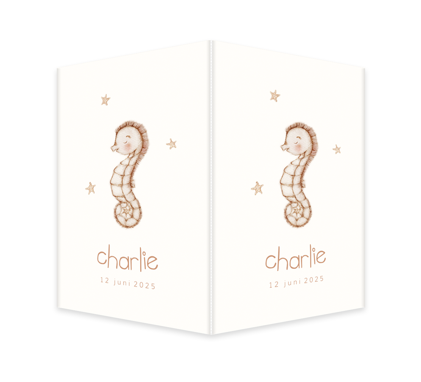 Prachtig geboortebord met watercolour zeepaardje en sterren