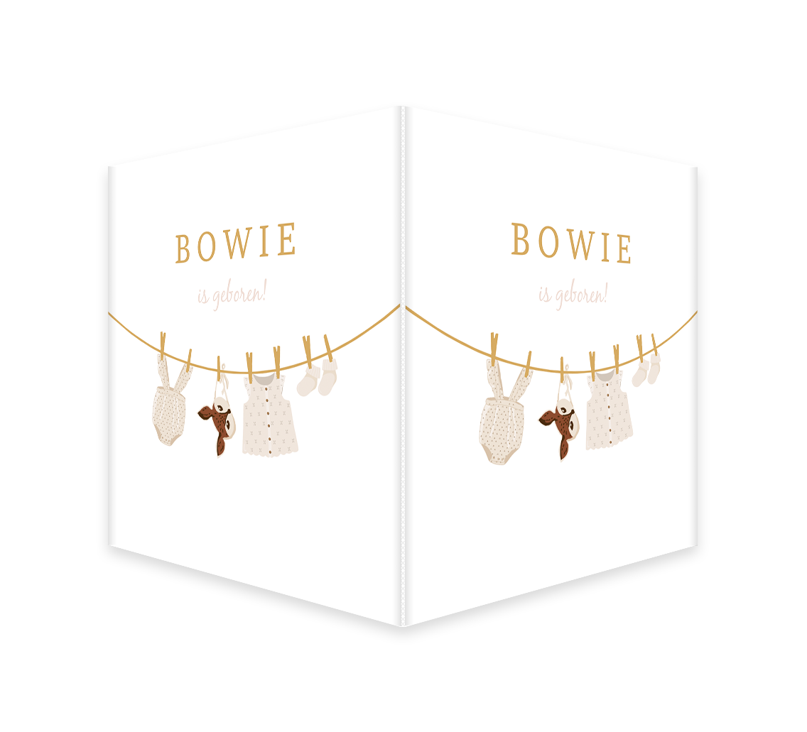 Een lief raambord om de geboorte van jullie kindje aan te kondigen. Dit bord heeft een witte achtergrond met daarop een waslijn vol lieve babykleertjes.