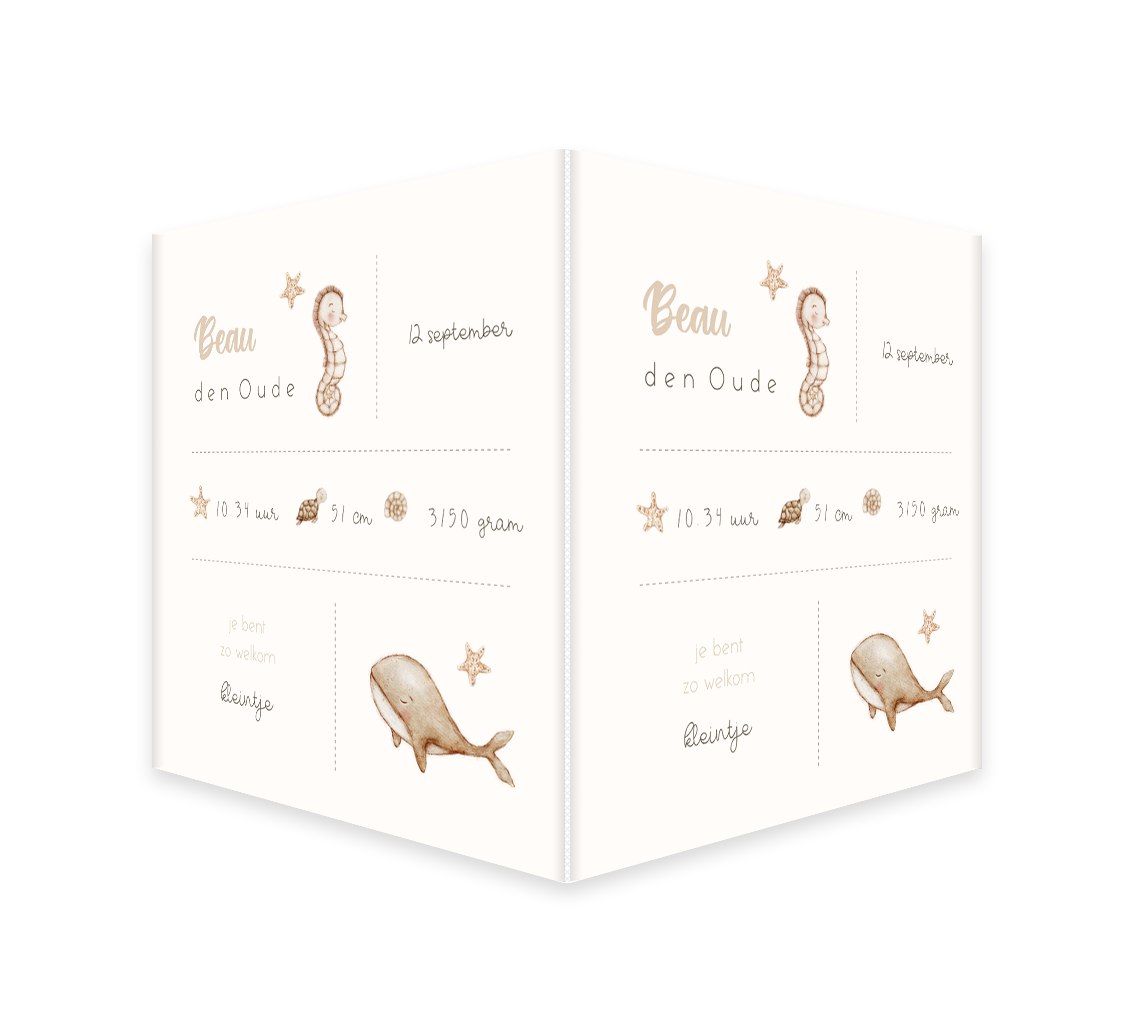 Laat de hele buurt weten dat je kleintje is geboren met dit raambord! Op het bord staan de watercolour illustraties van zeedieren en de geboortegegevens van je kleintje. Het bord kan helemaal naar wens aangepast worden in onze online editor.