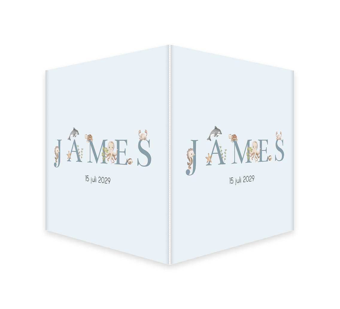 Je kleintje is geboren en dat mag iedereen weten! Dit raambord heeft een lichtblauwe achtergrond met de illustraties van verschillende zeedieren. Pas het bord helemaal naar wens aan in onze online editor.