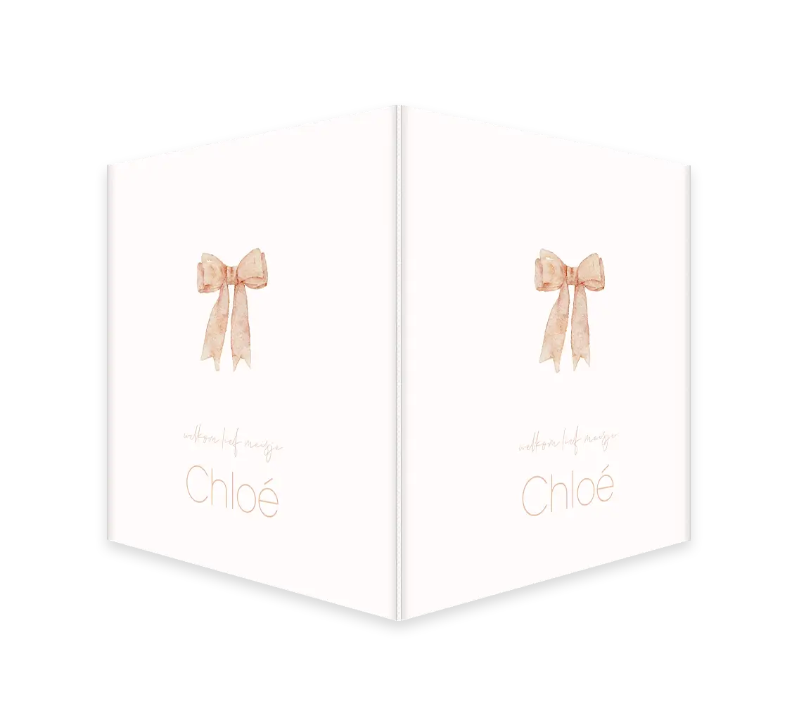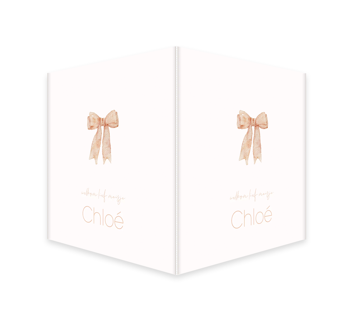 Lief toch, dit dubbele raambord met een pastelroze strik boven de naam? Het makelaarsbord kan gemakkelijk bewerkt worden in onze online editor. Je maakt één zijde op in de editor en dit wordt vervolgens op twee zijdes gedrukt.