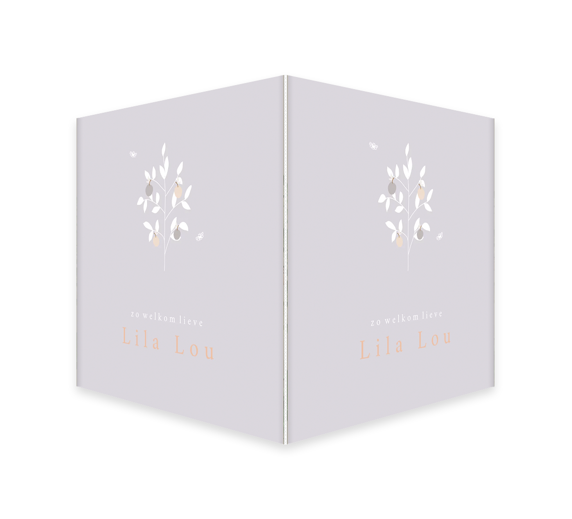 Een raambord voor de aankondiging van je kindje. Het bord heeft een lila achtergrondkleur met daarop een appelboom met appels erin. Pas het bord naar wens aan in de online editor.