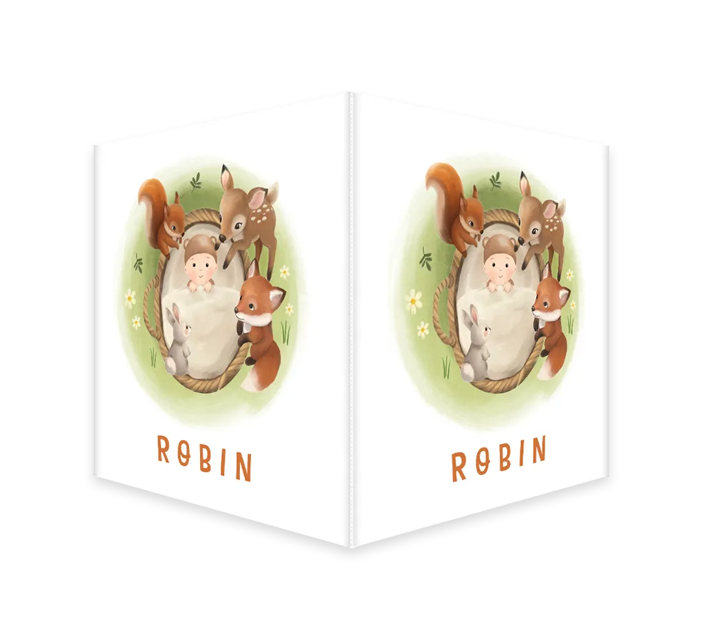 Lief raambord om iedereen te laten weten dat jullie kindje is geboren! Op het bord staat de naam van je kindje met daarboven een illustratie van een baby in een mandje omringd door schattige bosdieren in het gras. Het raambord kan gemakkelijk bewerkt worden in onze online editor. Je maakt één zijde op in de editor en dit wordt vervolgens op twee zijdes gedrukt.