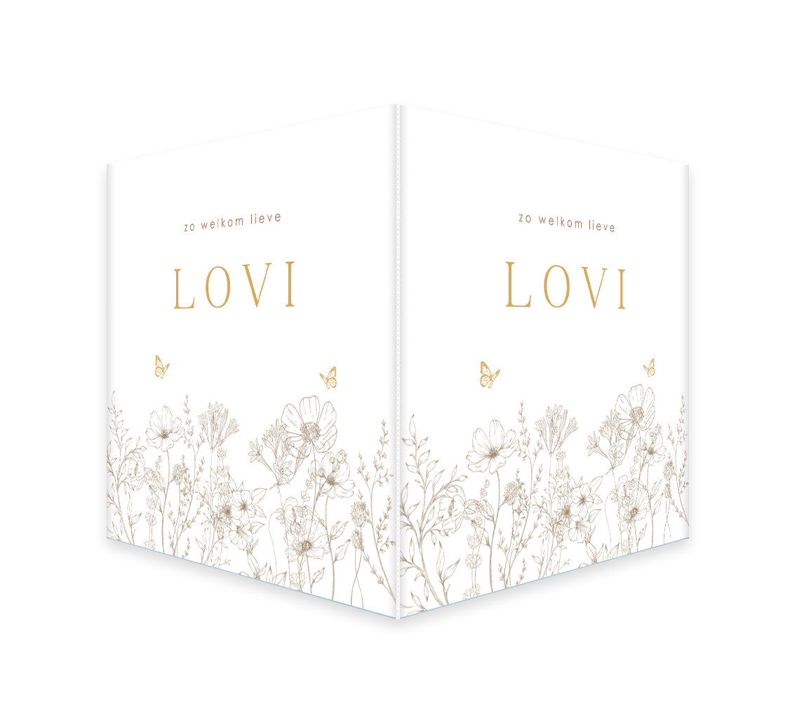 Kondig de geboorte van je kleintje op een originele manier aan met dit raambord! Op een witte achtergrond staan de beige lijntekeningen van bloemen. Ook zie je kleine vlinders. Het bord kan helemaal naar wens aangepast worden in onze online editor.