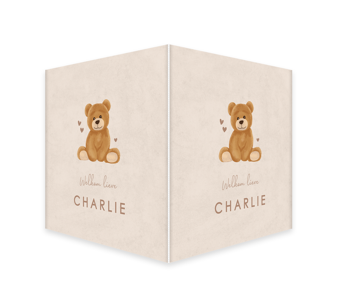 Lief toch, dit dubbele raambord met een schattig beertje boven de naam? Het bruine beertje met kleine hartjes staat op een velvet-look bruin beige achtergrond. Het makelaarsbord kan gemakkelijk bewerkt worden in onze online editor. Je maakt één zijde op in de editor en dit wordt vervolgens op twee zijdes gedrukt.