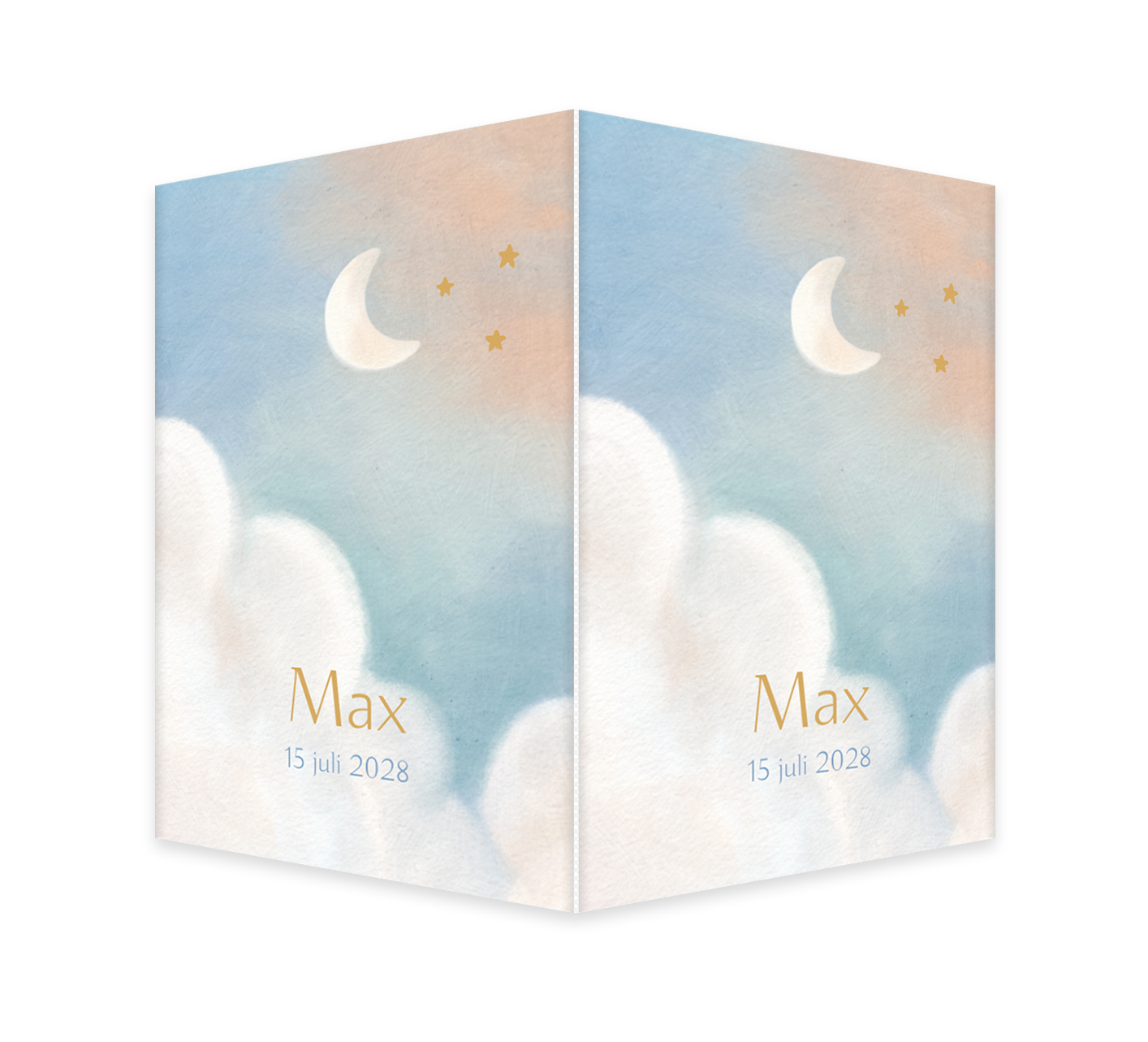 Een lief raambord om de geboorte van jouw kindje aan te kondigen. Het bord heeft een blauwe lucht met witte wolkjes. In de lucht zie je een maantje. Pas het ontwerp naar wens aan in onze editor.