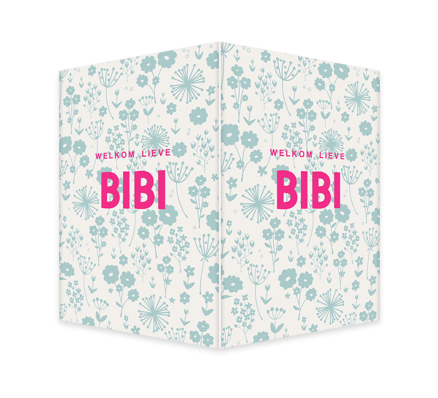 Een vrolijk geboortebord om de geboorte van jouw kindje aan te kondigen. Het bord heeft een blauwe bloemenprint met daarop colorblocking roze letters. Pas het bord naar wens aan in onze online editor.