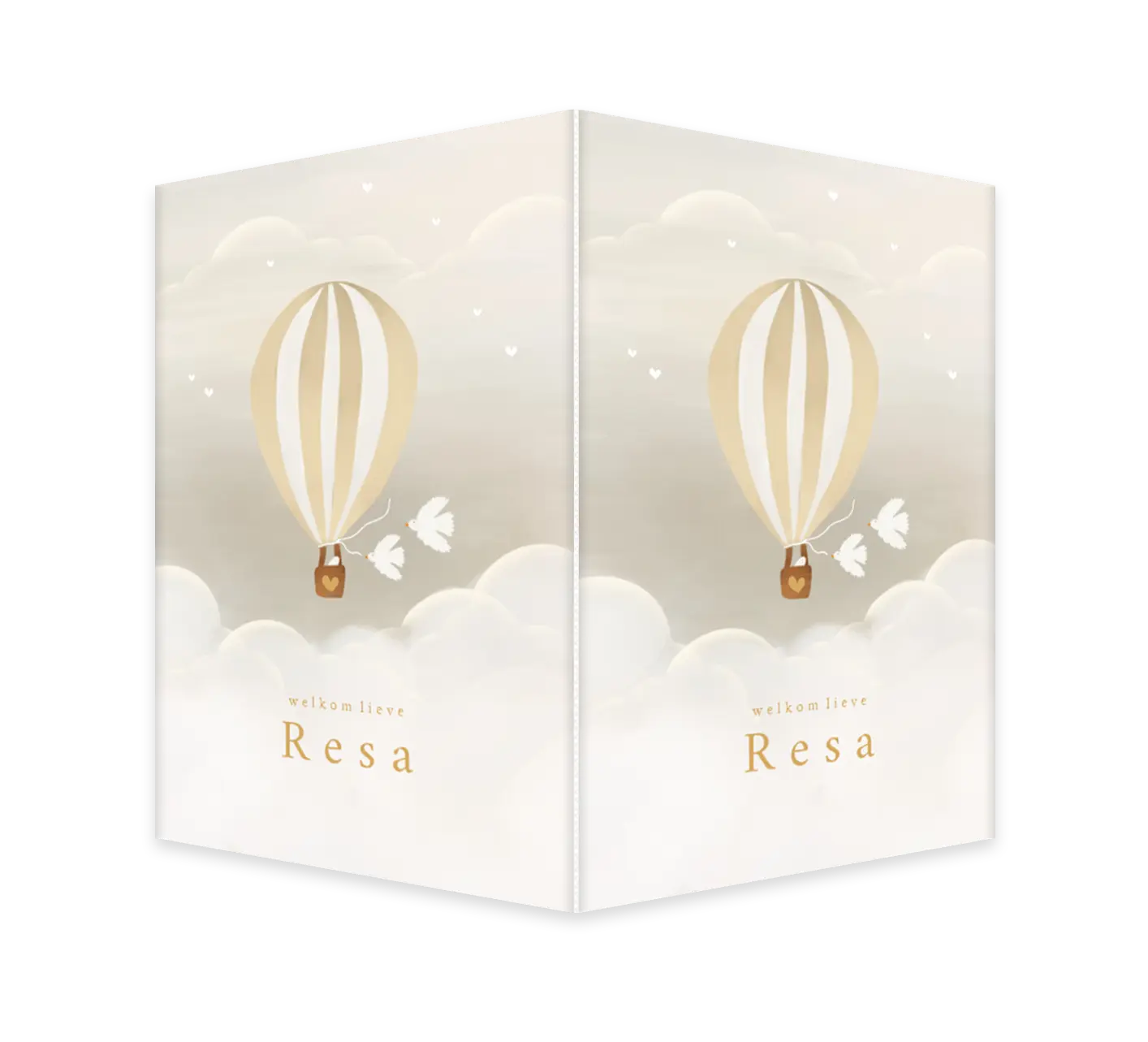 Een mooi bord wat past bij het geboortekaartje. Het raambord heeft een prachtige illustratie van een luchtballon die zweeft in de wolken. Pas het geboortebord naar wens aan in de online editor.