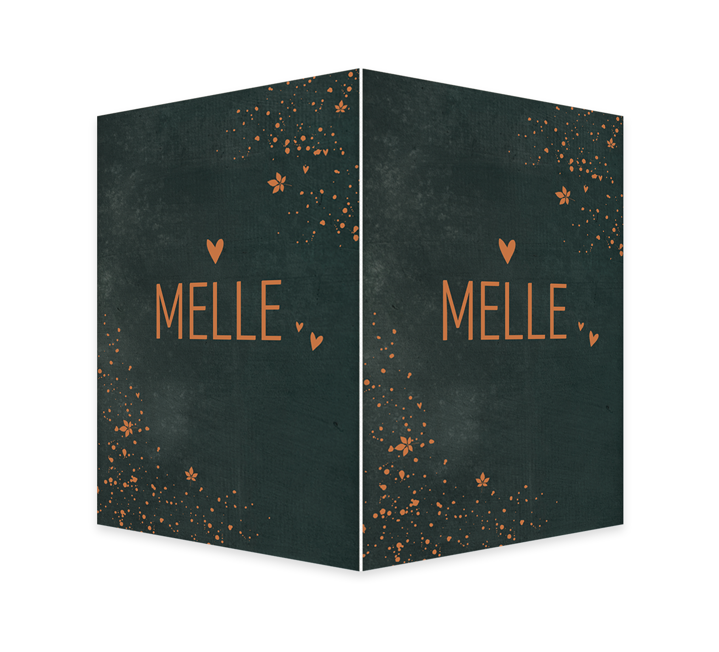 Stoer, dit dubbele raambord in grijze velvet-look om de geboorte van jullie zoontje aan te kondigen! De naam staat in trendy koperkleurige letters met hartjes er omheen. In de hoeken een wolk van spetters en bloemetjes. Het makelaarsbord kan gemakkelijk bewerkt worden in onze online editor. Je maakt één zijde op in de editor en dit wordt vervolgens op twee zijdes gedrukt.