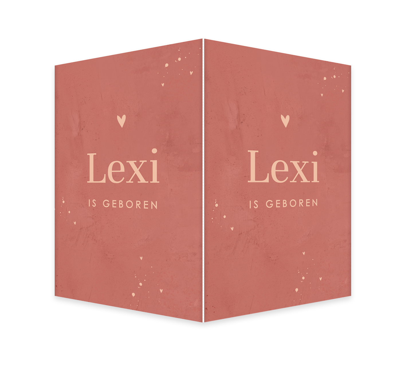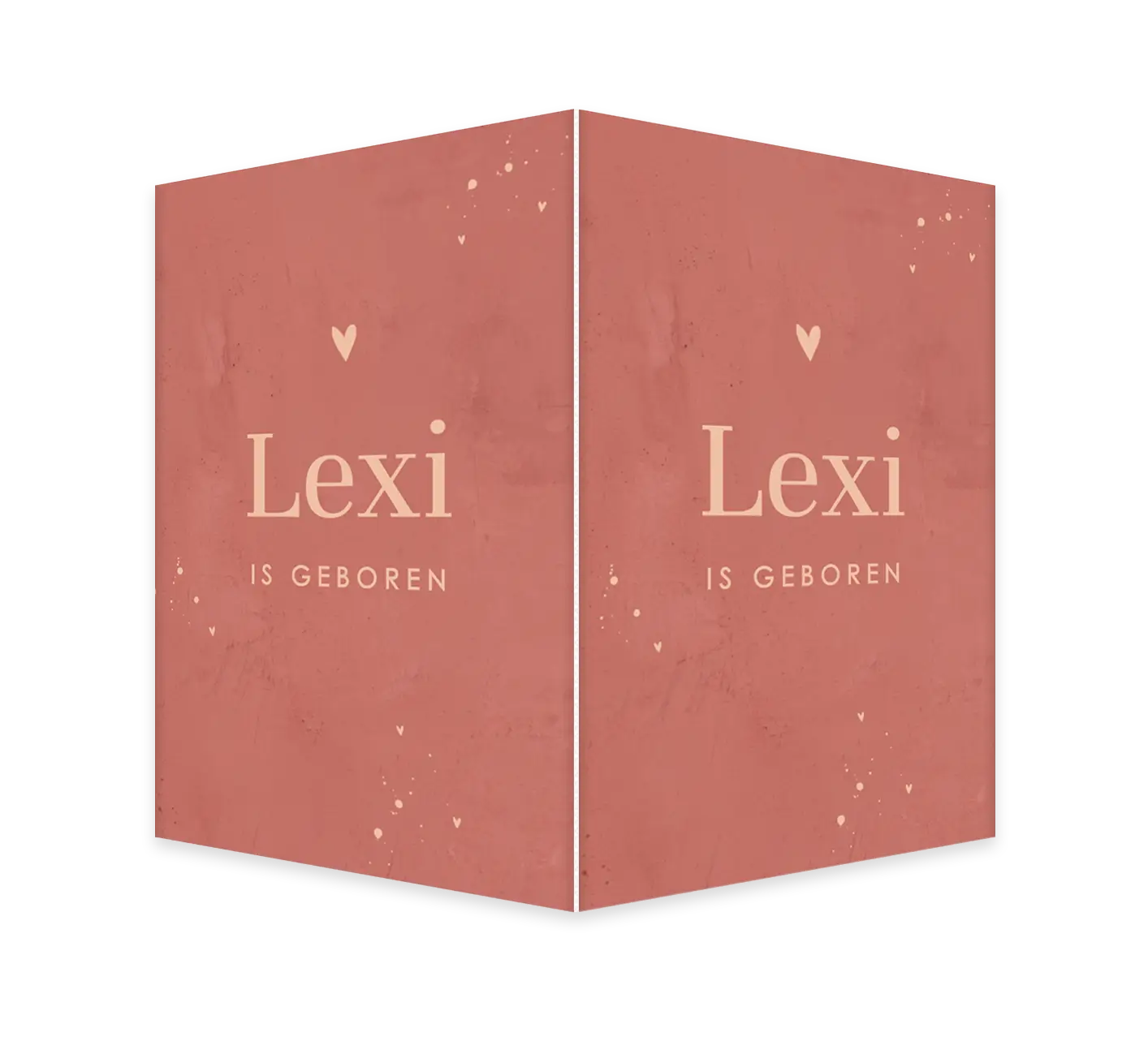 Wauw, wat een mooi raambord om de geboorte van jullie dochter aan te kondigen! Op de donkerroze velvet-look achtergrond staat de tekst in hippe letters in lichtroze, de hartjes en spetters zijn in dezelfde kleur peach roze. Het makelaarsbord kan gemakkelijk bewerkt worden in onze online editor. Je maakt één zijde op in de editor en dit wordt vervolgens op twee zijdes gedrukt.