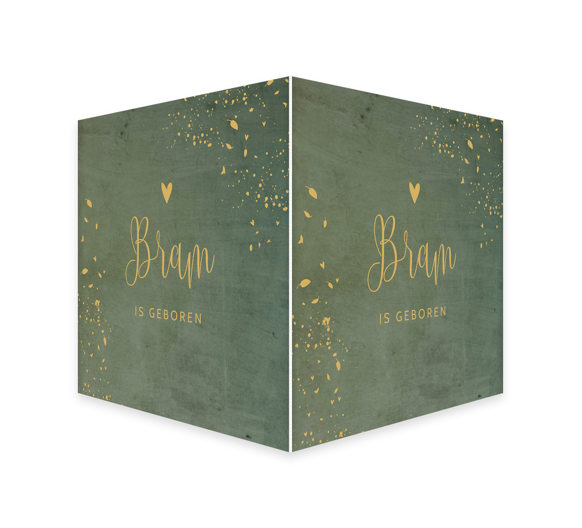 Dit is een stoer geboortebord om de geboorte van jullie zoontje aan te kondigen. Op de achtergrond in groene velvet-look staan vrolijke spetters. De naam staat centraal in goudkleurige letters met een lief hartje erboven. Het makelaarsbord kan gemakkelijk bewerkt worden in onze online editor. Je maakt één zijde op in de editor en dit wordt vervolgens op twee zijdes gedrukt.