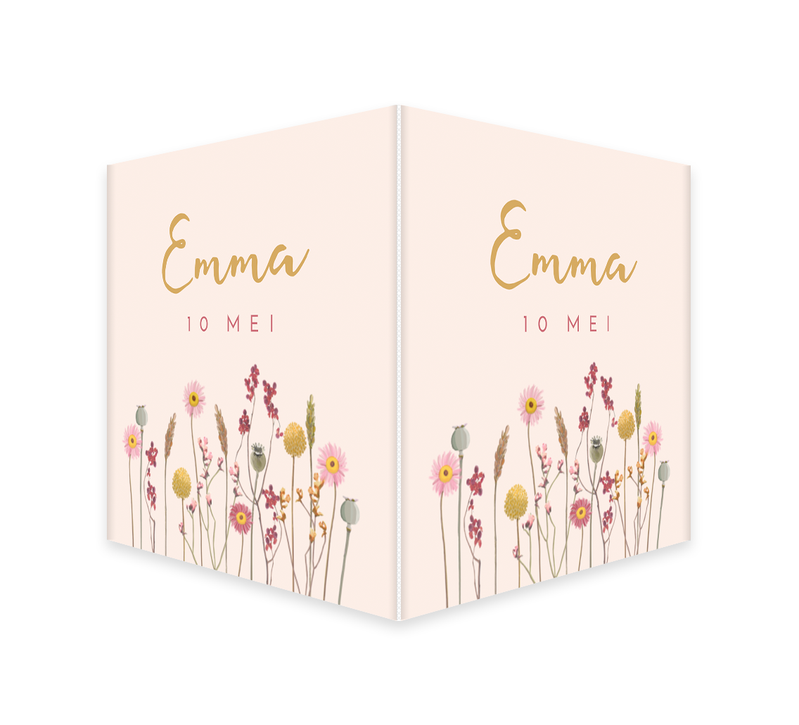 Hoera, jullie dochter is geboren, laat het iedereen weten met dit schattige pastelroze dubbele raambord! Onder de naam staat een mooie rand van kleurrijke veldbloemen. Het makelaarsbord kan gemakkelijk bewerkt worden in onze online editor. Je maakt één zijde op in de editor en dit wordt vervolgens op twee zijdes gedrukt.