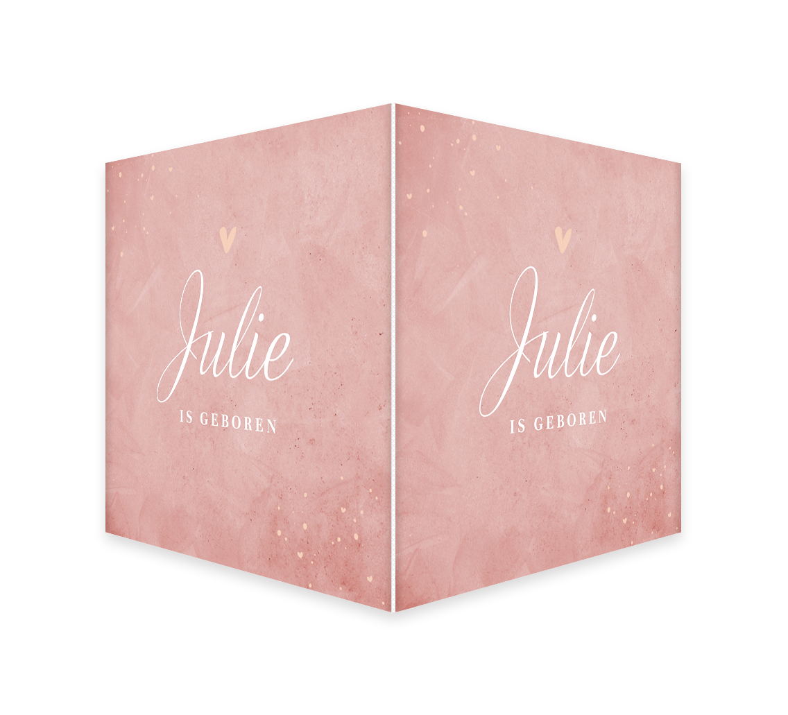 Met dit stijlvolle zachtroze dubbele raambord ziet iedereen het meteen: er is een dochter geboren! De naam staat in stijlvolle witte letters in het midden met een roze hartje erboven. De achtergrond is in roze velvet met in de hoeken hartjes en spetters. Het makelaarsbord kan gemakkelijk bewerkt worden in onze online editor. Je maakt één zijde op in de editor en dit wordt vervolgens op twee zijdes gedrukt.