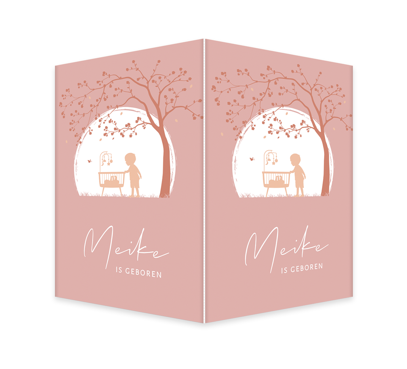 Bijpassend roze dubbel raambord om aan te kondigen dat er een zusje is geboren, lief toch?! Onder de boom in een landschap staat het silhouet van een kindje dat naar het zusje kijkt. Het makelaarsbord kan gemakkelijk bewerkt worden in onze online editor. Je maakt één zijde op in de editor en dit wordt vervolgens op twee zijdes gedrukt.