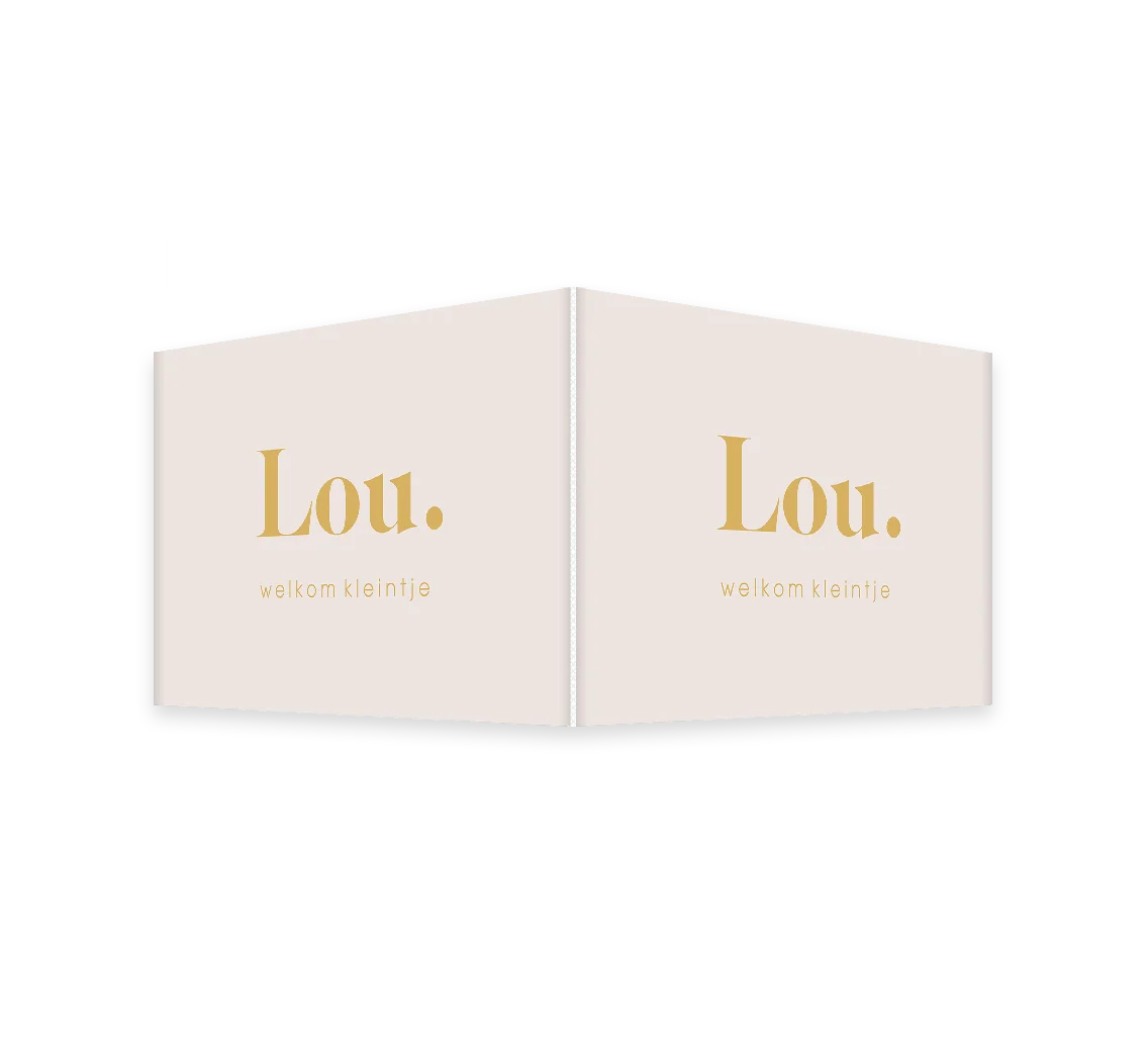 Op dit eenvoudige dubbele beige raambord kondig je de geboorte van jullie zoon of dochter aan. De naam staat in hippe typografie in goudkleur, de tekst is eenvoudig zelf aan te passen.
