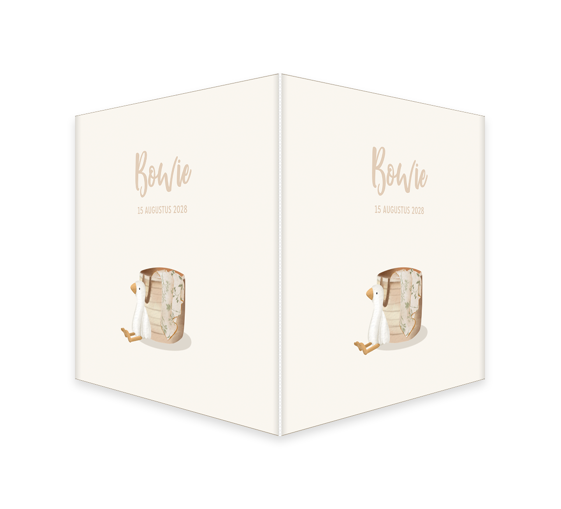 Wat een schattig raambord voor jouw kindje. Het raambord heeft een crème achtergrond. Daarop zie je een lieve illustratie van een gansje zittend tegen een mandje aan. Boven het gansje staat de naam van jullie kindje. Pas het bord naar wens aan in onze online editor.