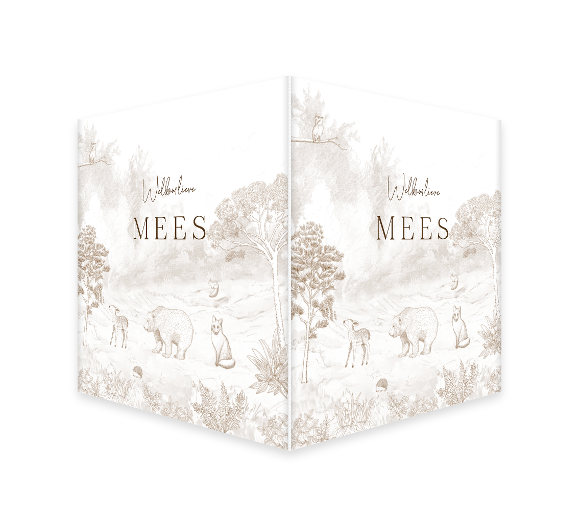 Een raambord met toffe illustraties van verschillende getekende bosdieren. Het bord is gemakkelijk te bewerken in onze online editor.