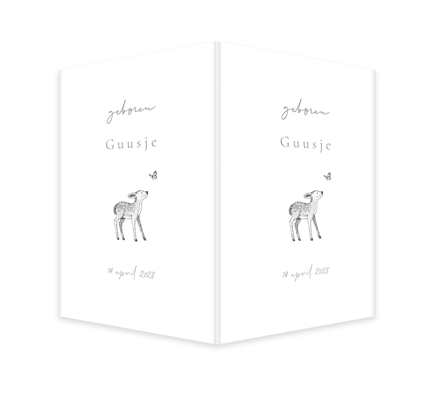 Een minimalistisch raambord om de geboorte van jouw kindje aan te kondigen. Het bord heeft een witte basis met daarop een lijntekening van een lief hertje. Pas het bord naar wens aan in onze online editor.