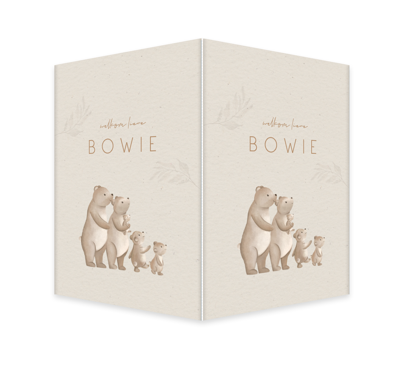 Een schattig raambord voor jullie tweede, derde of vierde kindje. Op het bord zie je een beren familie, bestaande uit twee ouders en kindjes deze zijn aan te passen aan het aantal kindjes in jullie gezin. Het ontwerp heeft bruine watercolour takjes en bestaat verder uit verschillende bruine tinten. Het raambord is volledig naar wens aan te passen in onze online editor.