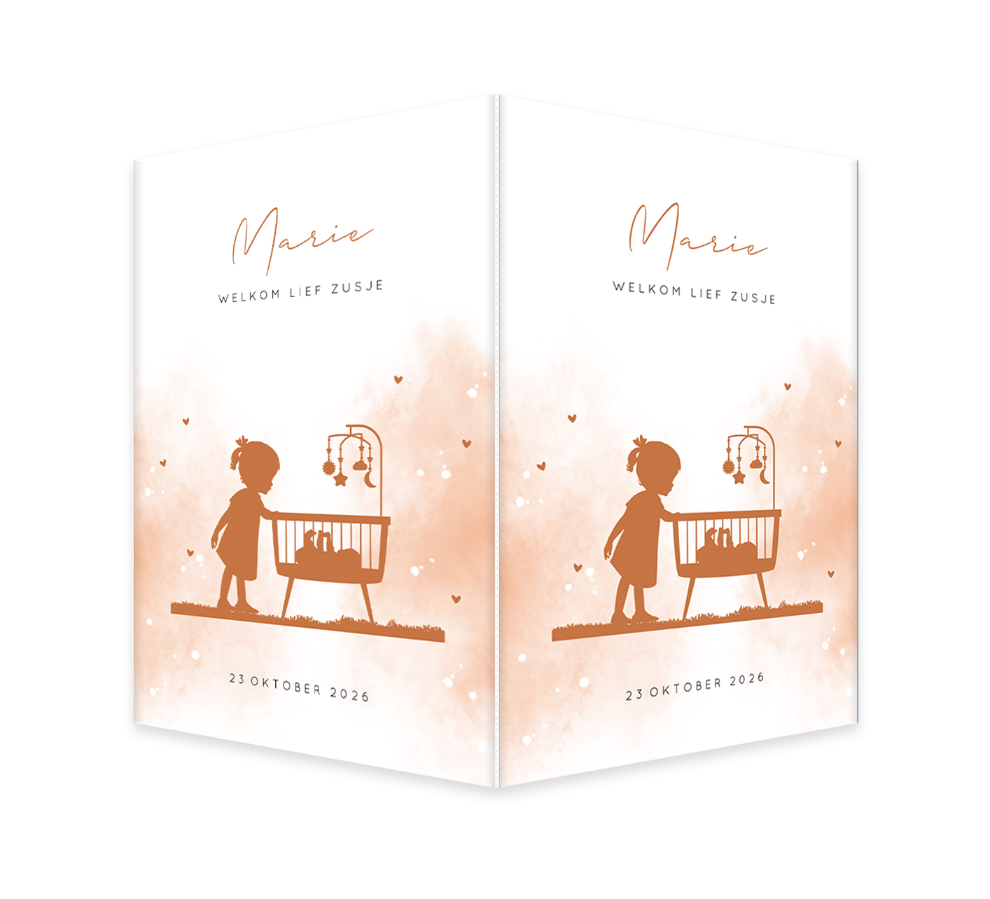 Raambord roestkleur watercolour en grote zus met wiegje
